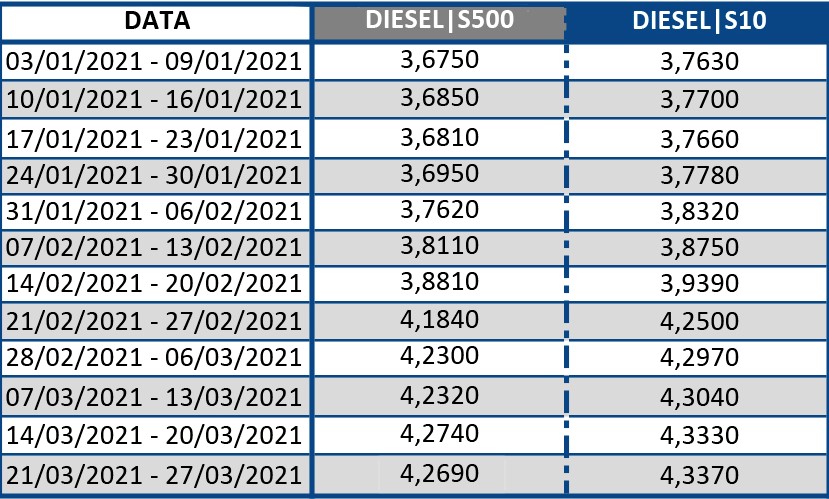 A NTC disponibiliza no seu portal um simulador que permite calcular a variação do diesel S10 ou Comum desde maio de 2004.