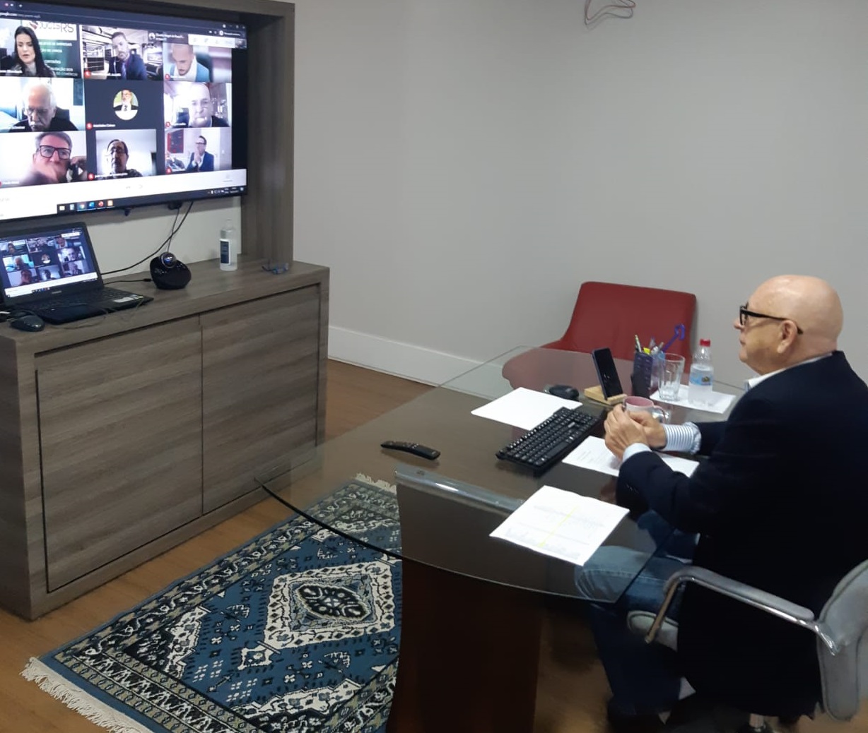 Afrânio Kieling, presidente do Sistema Fetransul e do Conselho Regional do SEST SENAT RS, participou na manhã de hoje (18), da Sessão Plenária online do Colégio de vogais da Junta Comercial, Industrial e Serviços do RS, como convidado do vogal Ângelo Coelho.