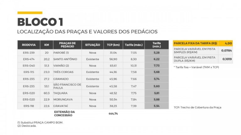 Veja as tarifas e locais propostos