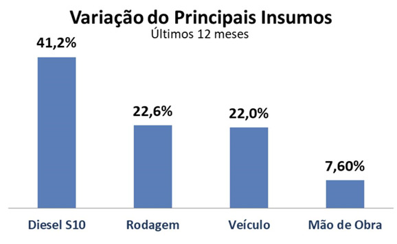 É uma situação difícil para o setor, pois, é um índice inflacionário impossível de ser absorvido, mesmo com a adoção de medidas emergências de redução de custos, até porque, em virtude da pandemia, todas elas ao longo dos últimos meses já foram implementadas. Esta situação é resultado de aumentos nos principais insumos consumidos pelo setor: combustível, veículos e mão de obra que chegam a representar 90% dos custos envolvidos.