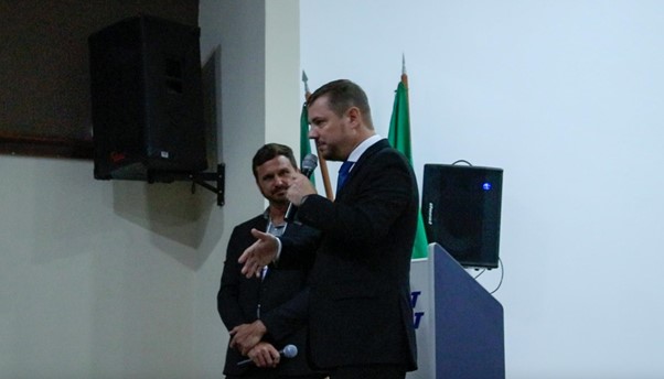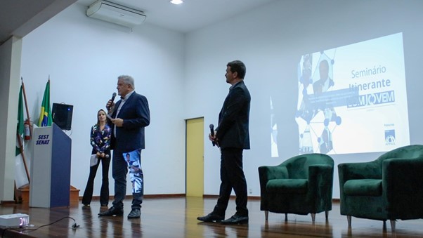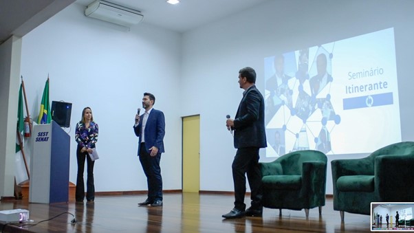 Participaram das apresentações iniciais o coordenador nacional da COMJOVEM, André de Simone, e a vice-coordenadora, Joyce Bessa. André destacou o sucesso de público do Seminário e agradeceu o apoio de todos os patrocinadores. “Muito obrigado por acreditarem no nosso trabalho e na atuação da COMJOVEM em levar o desenvolvimento e o incentivo ao networking para o Brasil. Graças a essa confiança e investimento, hoje, contamos com a presença de representantes da COMJOVEM de toda a região Sul”, começou André. O coordenador do Núcleo de Chapecó, Daniel Vicenzi também comentou em sua fala inicial a importância da realização do evento e como o grupo vem se desenvolvendo ao longo dos últimos três anos de atuação.