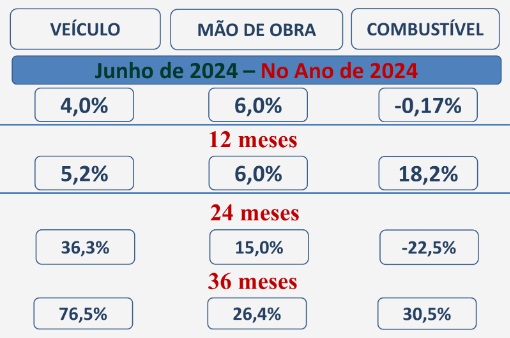 Esta defasagem – entre o frete médio recebido e os custos apurados pela NTC – traduz bem como está o mercado de transporte RODOVIÁRIO brasileiro. E, mesmo com a estabilidade dos preços dos insumos nos primeiros seis meses do ano, o acumulado ainda não foi recuperado. Por exemplo, o diesel acumula uma alta de 18,2% em média nos últimos 12 meses; já os preços dos veículos acumulam um aumento de 76,5% nos últimos 36 meses.