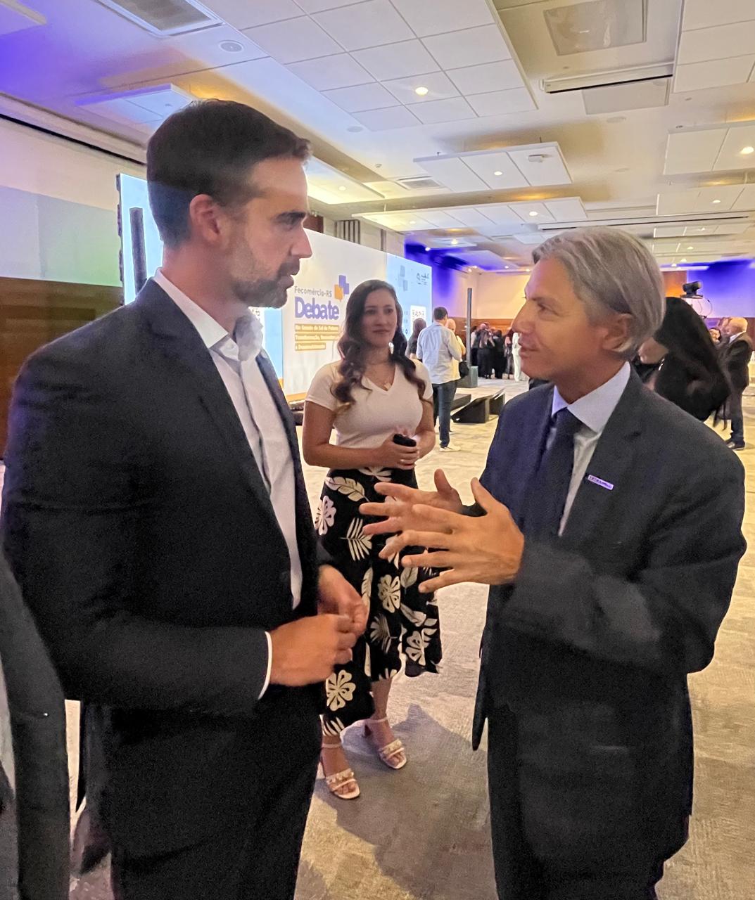 O evento foi realizado no dia de hoje (14), na sede da Fecomércio em Porto Alegre e abordou o tema Rio Grande do Sul do Futuro. Francisco Cardoso, presidente da Fetransul, representou a entidade e na oportunidade dialogou com lideranças presentes, em especial com o Governador do RS, Eduardo Leite.