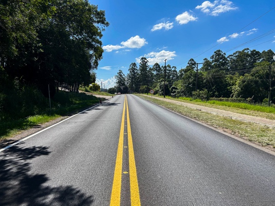 No trecho entre Carlos Barbosa e Barão, as equipes atuam entre o km 233 e o km 241 com serviços de fresagem e recomposição do pavimento com concreto asfáltico, seguidos de sinalização horizontal para garantir maior segurança aos usuários. O segmento está inserido no Trecho II, que se estende do km 232,1, em Carlos Barbosa, ao km 287,3, em Montenegro, passando pelos municípios de Barão, São Pedro da Serra, Salvador do Sul e São José do Sul.
